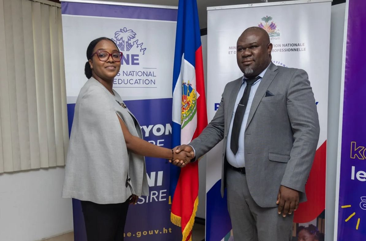 Le mardi 15 avril 2025, un accord stratégique a été paraphé entre la Directrice Générale du Fonds National de l’Éducation (FNE), Mme Sterline Civil, et le Coordonnateur Général du Programme National de Cantines Scolaires (PNCS), M. Kevenot Dorvil, en vue de renforcer de manière durable le programme d’alimentation scolaire à travers le pays.