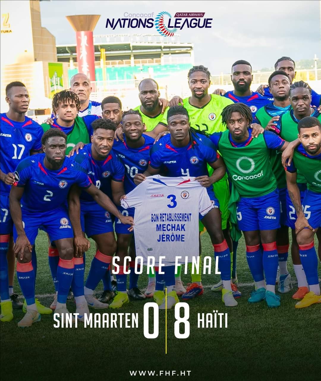 La sélection haïtienne de football a réalisé une performance éclatante le vendredi 15 novembre 2024, en battant Sint-Maarten sur le score sans appel de 8 à 0, lors de l’avant-dernière journée de la Ligue des Nations de la Concacaf (Ligue B). Selon les données officielles de la Concacaf, cette victoire permet à Haïti de s’assurer une place en Ligue A et de décrocher son ticket pour la Gold Cup 2025. Le match, disputé au stade de San Juan, a été marqué par une domination sans partage des Grenadiers dès les premières minutes.