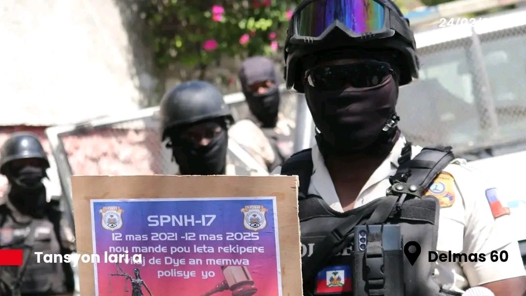 Le lundi 24 février 2025, des policiers du Syndicat de la Police Nationale d’Haïti (SPNH-17) se sont rassemblés devant la Villa d’Accueil à Musseau pour protester contre l’insécurité persistante. Selon le syndicat, cette manifestation vise à dénoncer ce qu’ils considèrent comme une insécurité “programmée” par le gouvernement, le Conseil Supérieur de la Police Nationale (CSPN) et les conseillers-présidents.