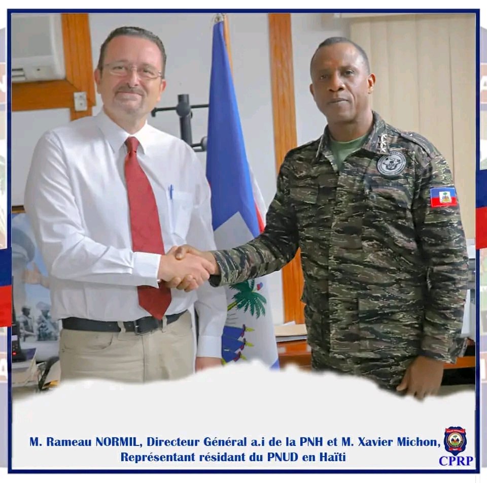 Le Directeur Général a.i de la Police Nationale d’Haïti (PNH), M. Rameau NORMIL, a accueilli ce vendredi 6 septembre 2024 une délégation de Cowater International, un organisme canadien, à la Direction Générale de la PNH à Clercine, Tabarre. Parmi les personnalités présentes figuraient Mme Francine Senecal, Directrice principale de projet, et Mme Suzie Leblanc, Directrice de terrain. L’objectif de cette rencontre était de discuter des différentes étapes du Projet Appui à une Police Professionnelle et Inclusive à Haïti (APPI).